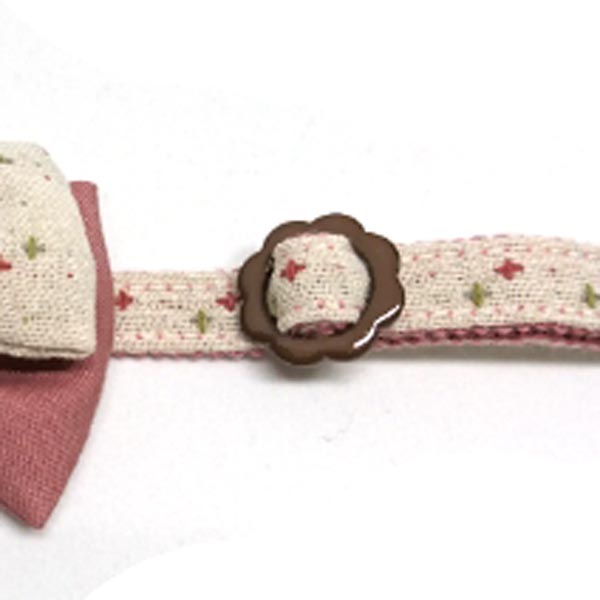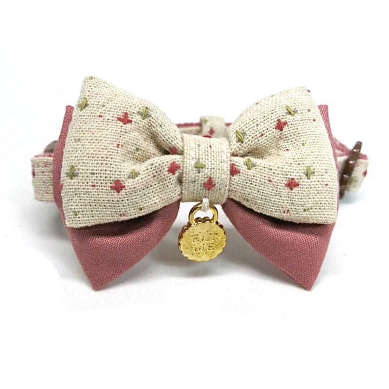 A unique double bow linen collar with a cute charm engraved with “EAT ME” is perfect for an irresistibly cute munchkin!