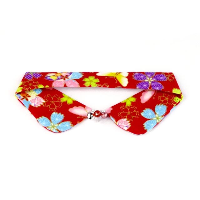Colourful butterflies flit amongst flowers against the stunning red background of this decorative collar. Finished off with a tiny bunch of complementing charms.