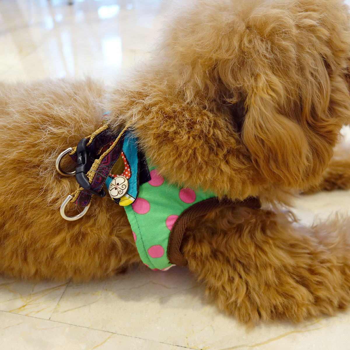 Hand-made in Japan with love, this vest-style harness was specially designed by a fellow dog parent to eliminate unnecessary stress around her pup’s throat area when walking with commercial collars.