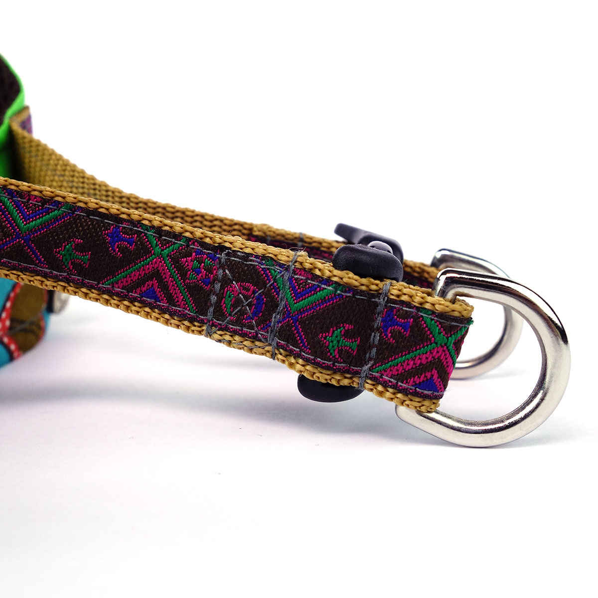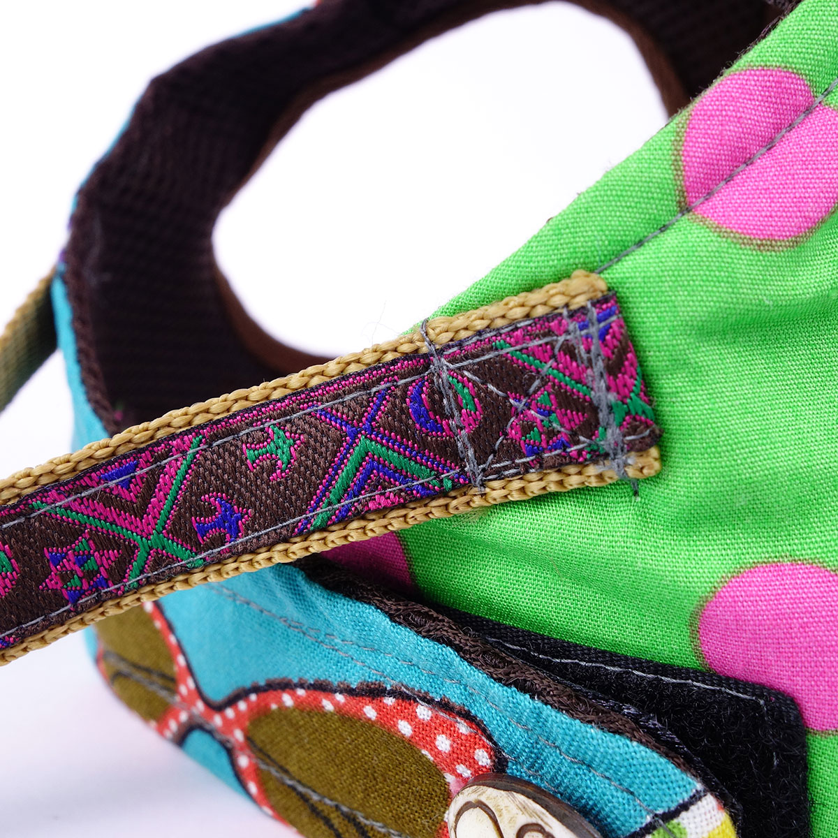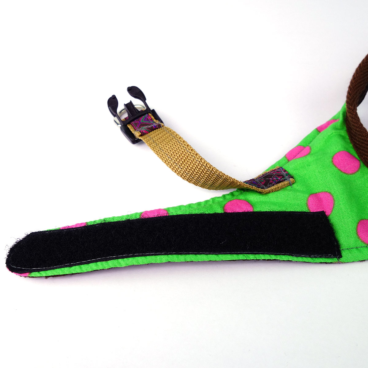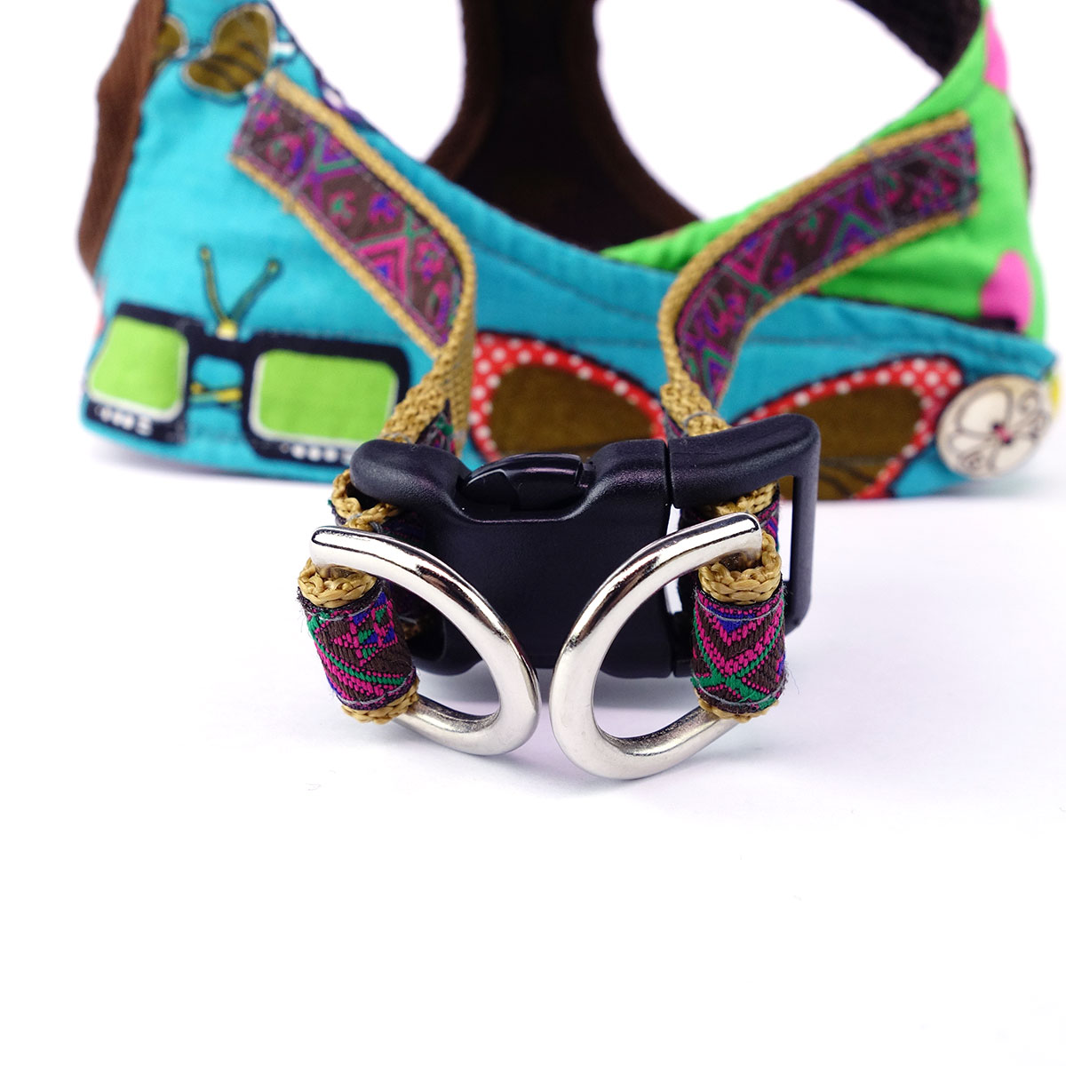 The cushioned breathable polyester mesh interior ensures your dog’s ultimate comfort, while the outer patchwork of 3 different colourful 100% cotton prints allows you and doggie to walk in style.