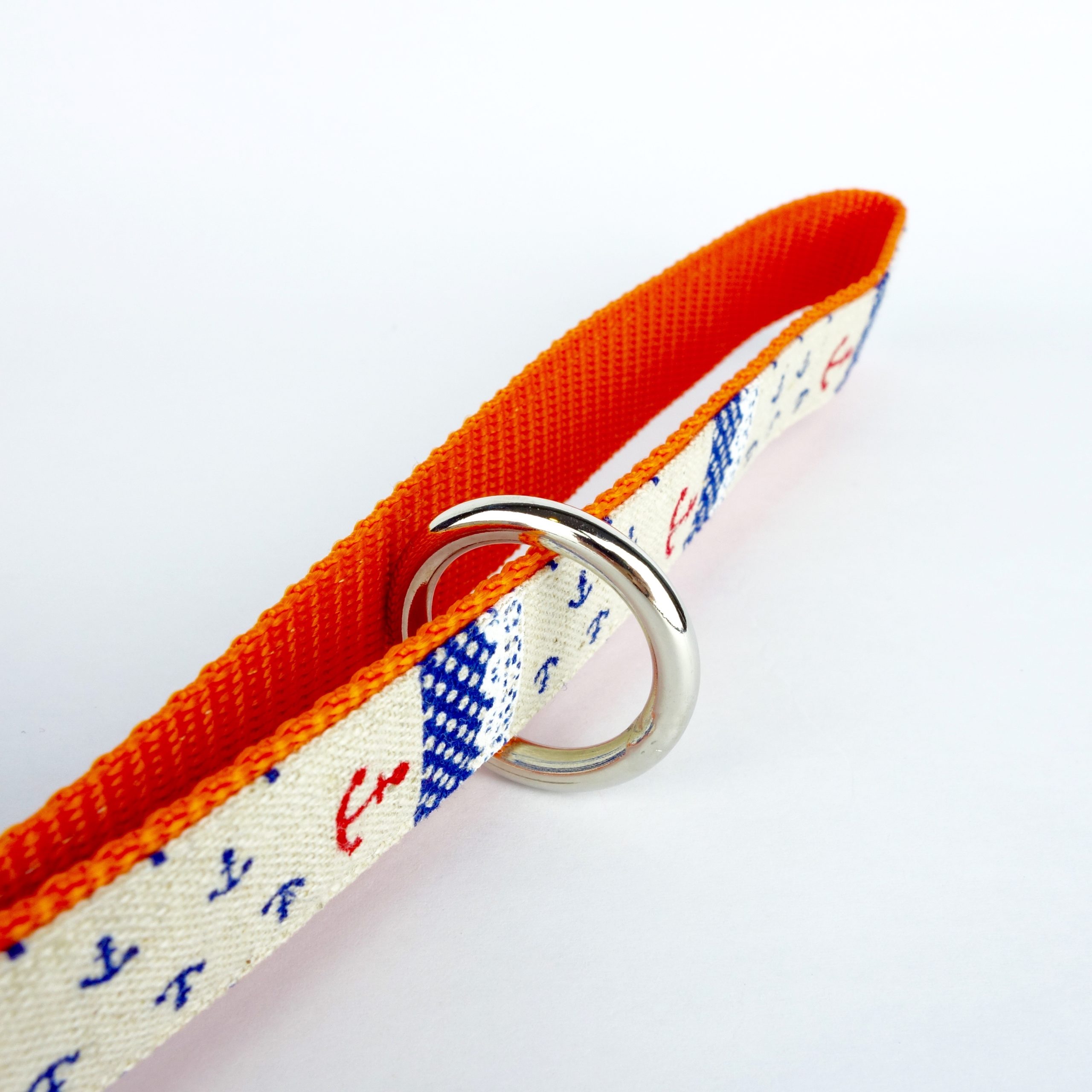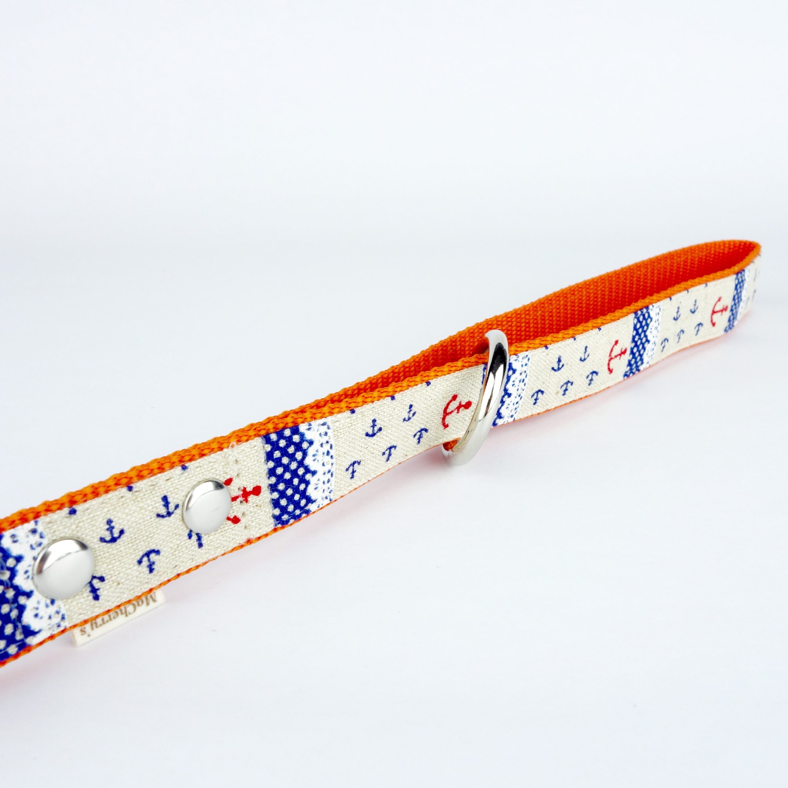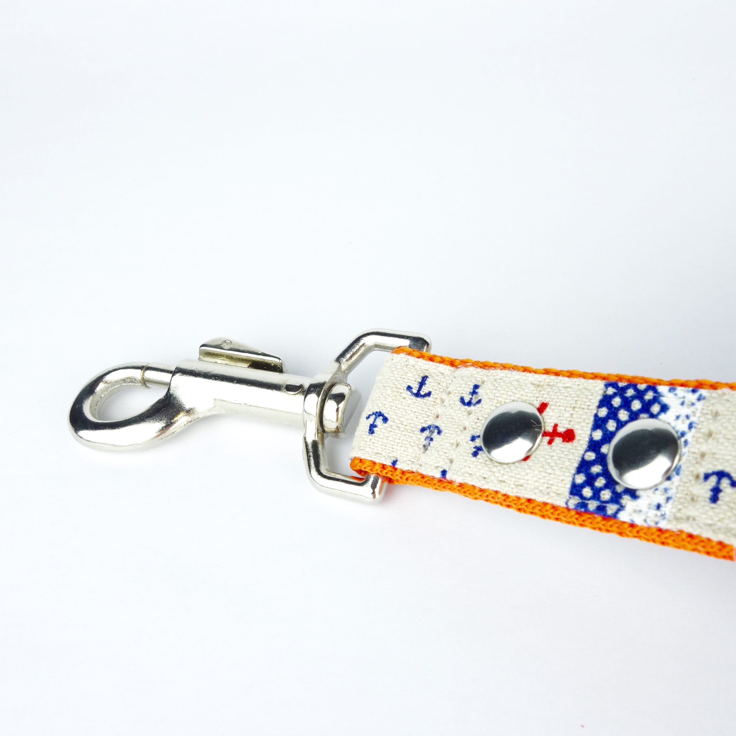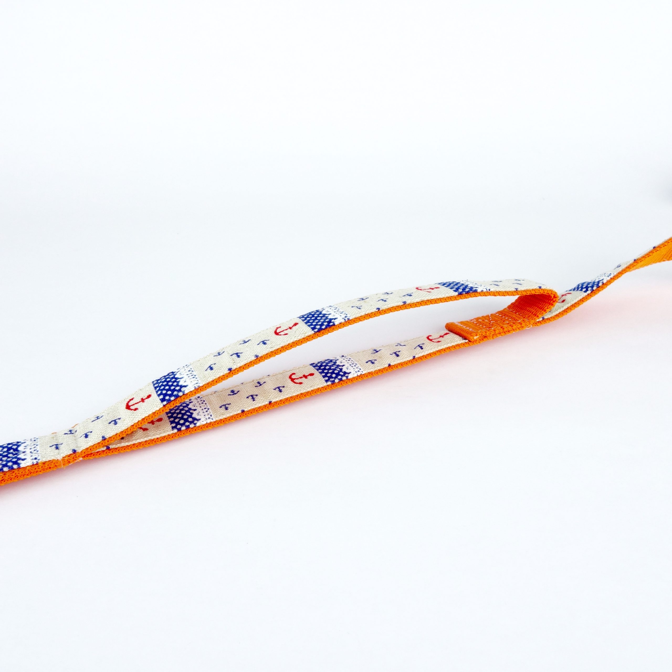 Let your fashion-forward pup work the nautical look with this leash, sporting classic blue anchor prints with orange trimming for an extra pop of colour!