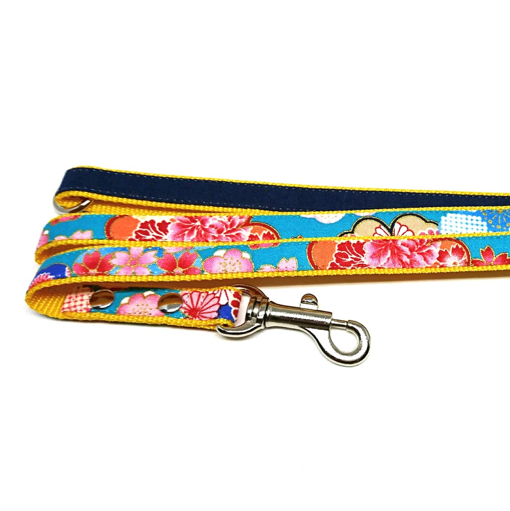 This bright yukata-inspired design promises to turn heads on those summery walks under the clear blue skies ! The leash also thoughtfully comes with a metal ring at the hand-loop in the event you would like to attach your furpal to your belt as you jog. The ring can also be used to attach a poop bag holder (very useful)!